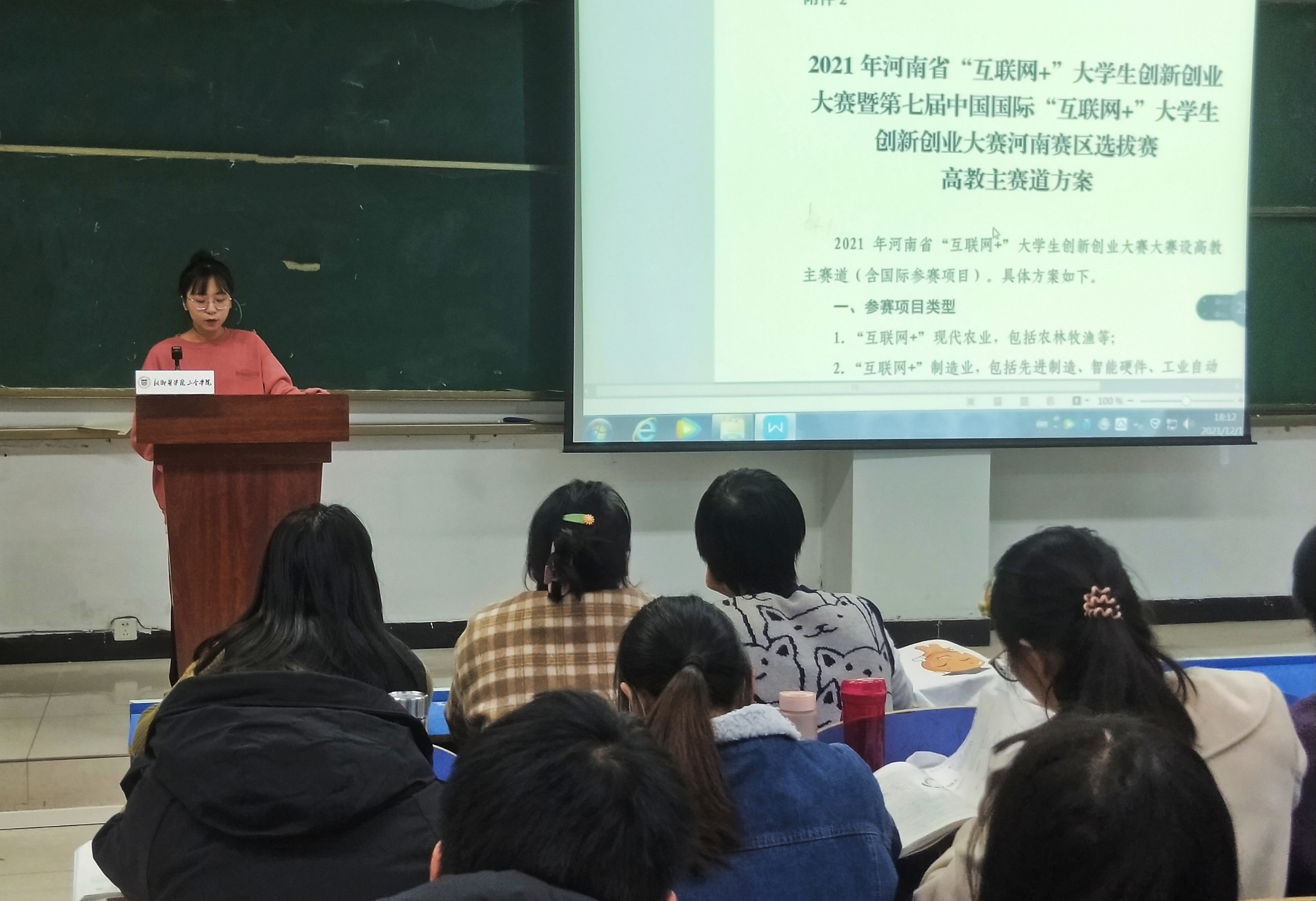 为深化高等教育综合改革,激发学生的创造力,培养造就“大众创业、万众创新”主力军。12月14日,精诚书院在新乡校区问学楼301教室成功举办“互联网+”大学生创新创业知识讲座。讲座邀请临床专业学生郑屹轩担任主讲人,2021级和2020级共100多名同学参加。郑屹轩同学曾获2018年中国自强之星、2018年南阳市优秀共青团员、2018年河南省⼗佳志愿者、2020级河南省优秀毕业生,2020年河南省职业生涯规划⼤赛三等奖、第七届互联网+大赛校级三等奖等荣誉。