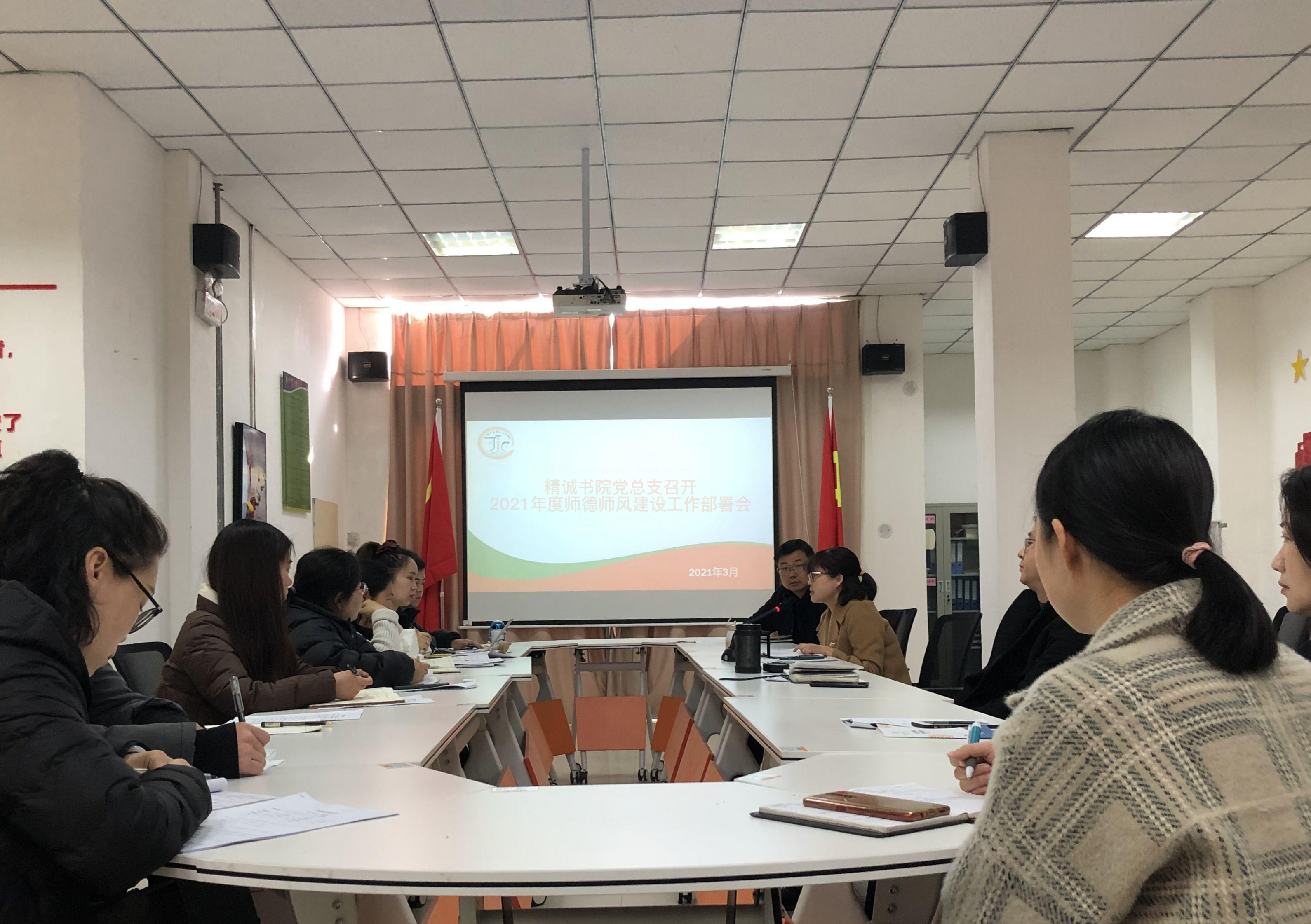 为贯彻落实《关于加强和改进新时代师德师风建设的意见》文件精神,进一步推动精诚书院师德师风建设,落实教师立德树人根本目标,精诚书院党总支于3月26日召开师德师风建设工作部署会,党总支书记张新主持会议,书院全体教职工参加。