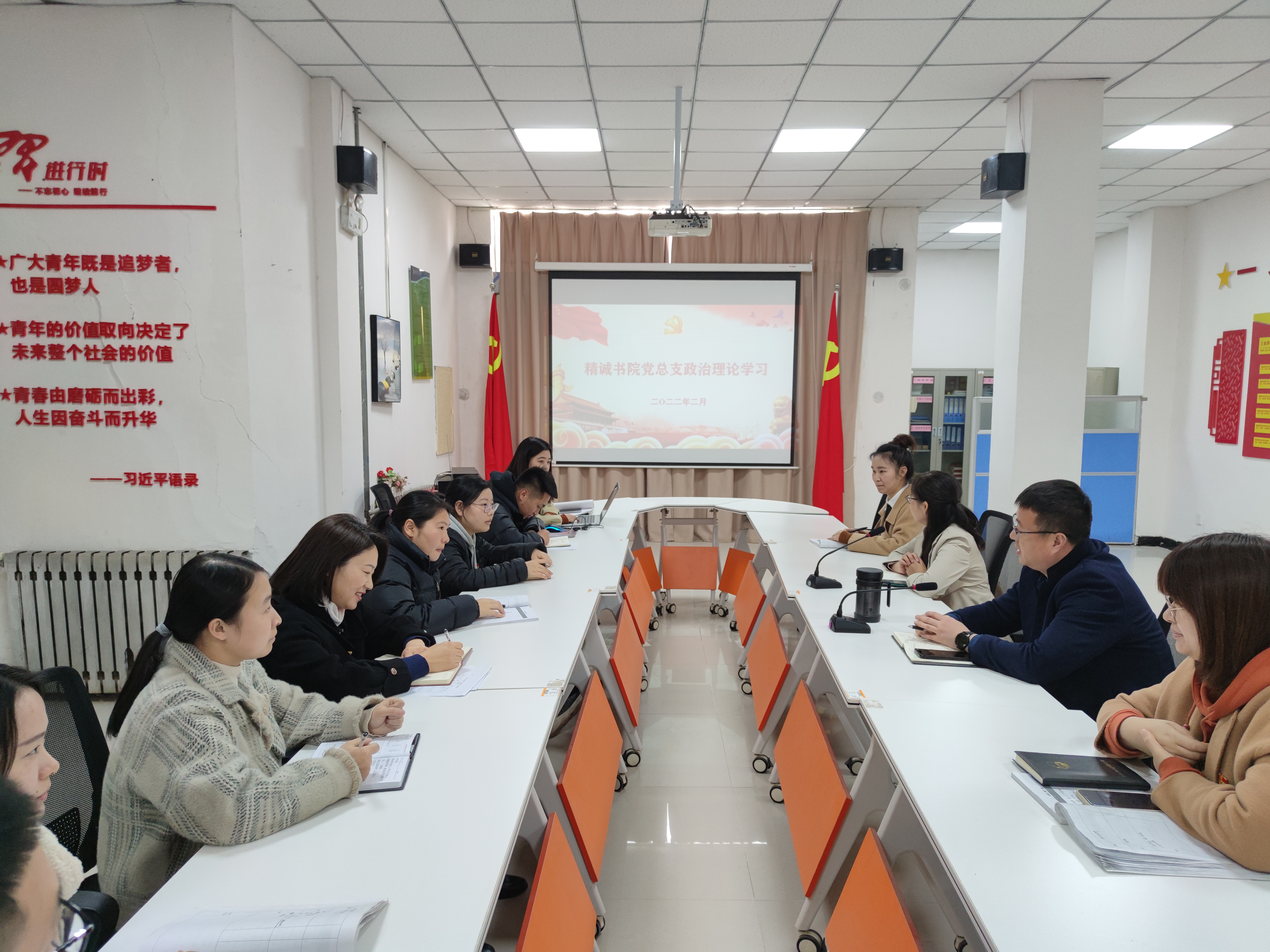 2月28日,精诚书院党总支于精诚书院党员活动室召开二月份政治理论学习会议。精诚书院党总支全体成员参加会议,会议由精诚书院党总支书记张新主持。