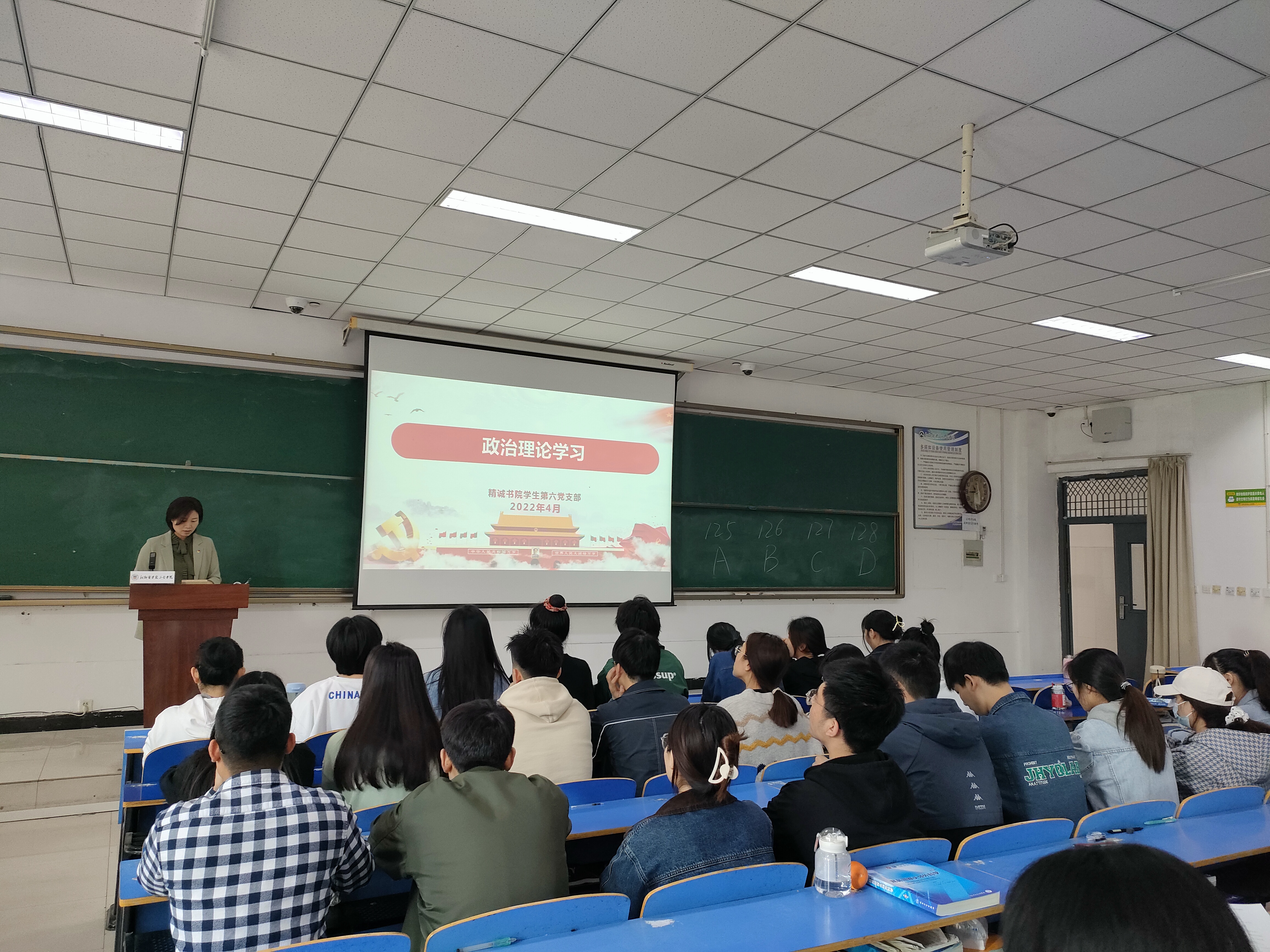4月18日,精诚书院学生第六党支部书记王春平在问学楼302教室主持学习:《中共中央政治局常务委员会召开分析新冠肺炎疫情形势部署从严抓好疫情防控工作》,精诚书院学生第六党支部全体党员参加学习。
