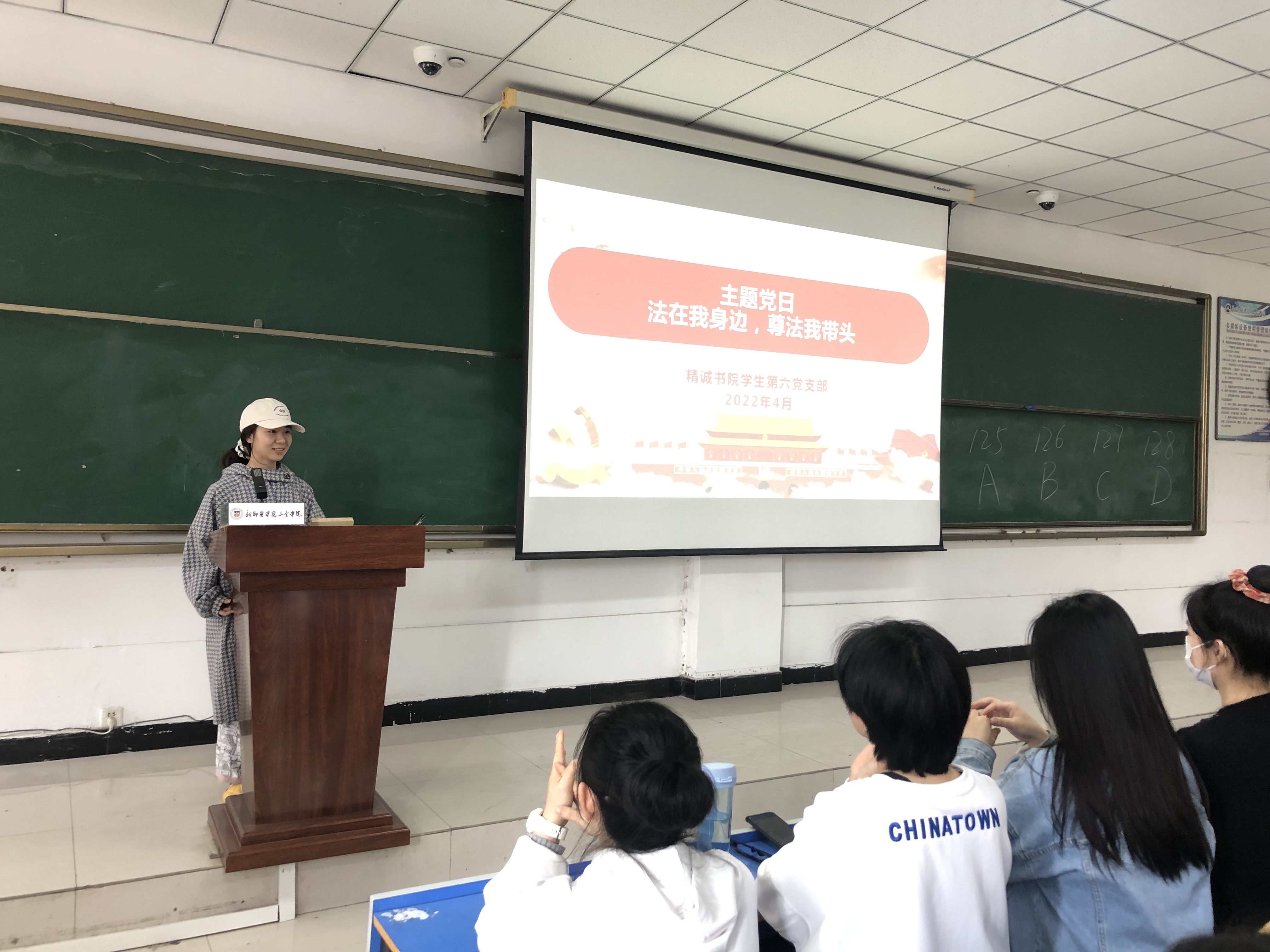 为深入贯彻学习《全省教育系统法制教育宣传周活动》,4月19日上午,精诚书院学生第六党支部开展“法在我身边,尊法我带头”主题党日活动,活动由支部书记王春平主持,全体党员参加会议。