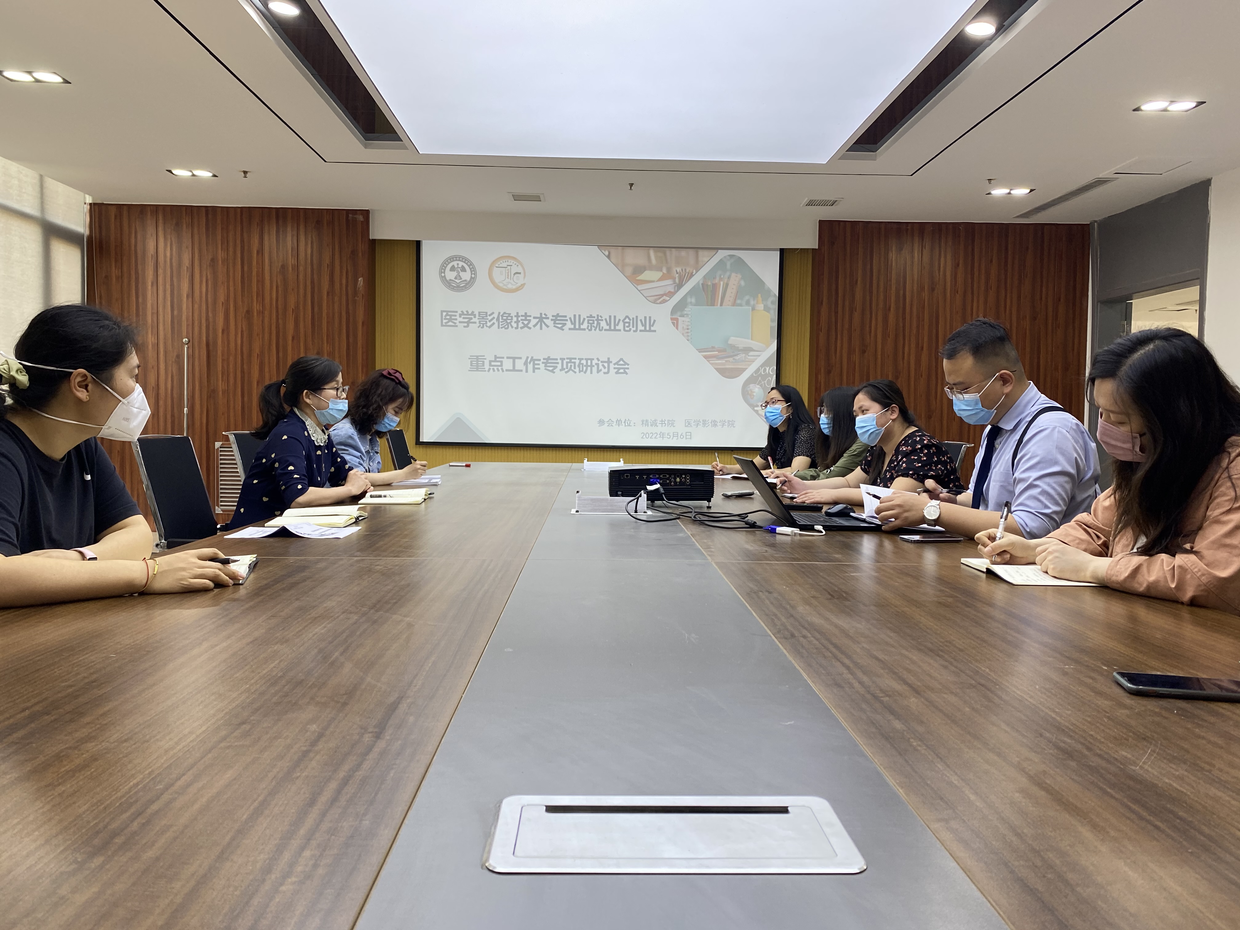 本次双院沟通就学业导师开展情况和医学影像技术专业毕业生就业创业进行了深入讨论,检验与影像学院党总支副书记、医学影像学院教学副院长苗莹莹、精诚书院党总支副书记万建苗以及相关老师参加了会议。
