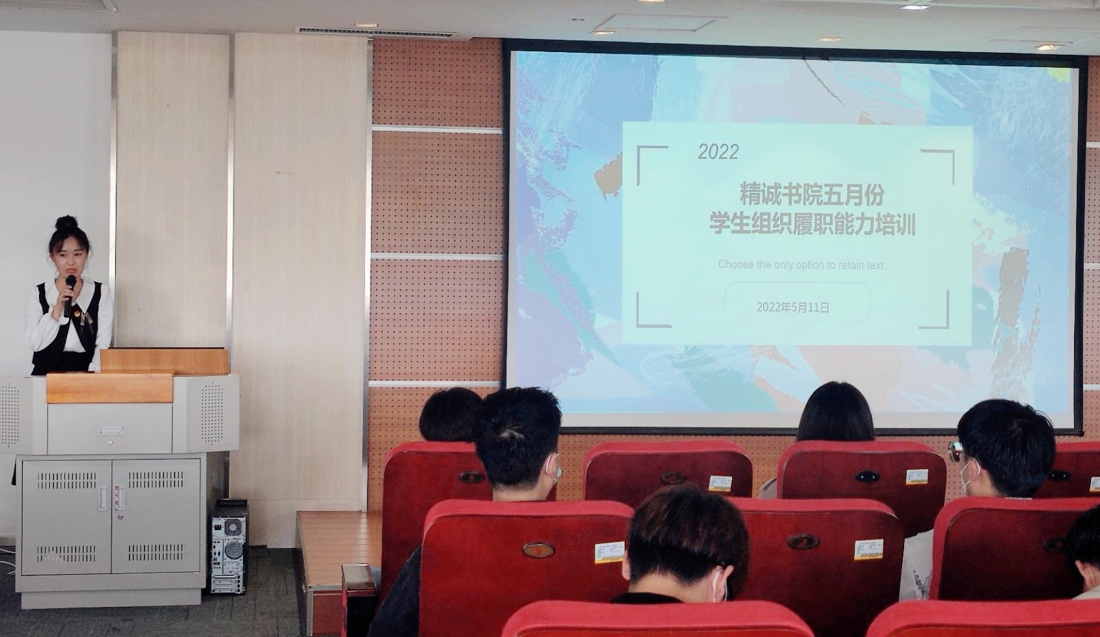 为进一步学习习近平总书记在庆祝中国共青团成立100周年大会上的重要讲话精神,增强学生干部队伍的政治意识、责任意识、大局意识、服务意识,5月11日中午,精诚书院于图书馆五楼报告厅召开以“团旗引成长,梦想耀青春”为主题的学生组织履职能力培训会,会议由团总支书记金潇主持,各学生组织主席团以及主任参加。