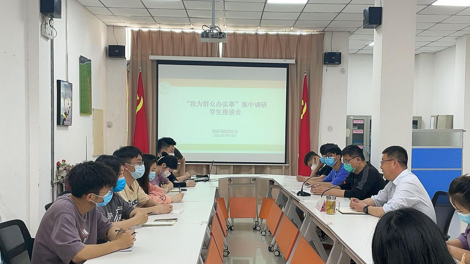 为进一步深化能力作风建设年活动,推进党史学习教育常态化长效化,切实转变工作作风,密切联系群众,推进学院和书院各项事业高质量发展。5月18日,精诚书院党总支书记张新在党员活动室召开“我为群众办实事”中高层管理人员集中调研学生座谈会。