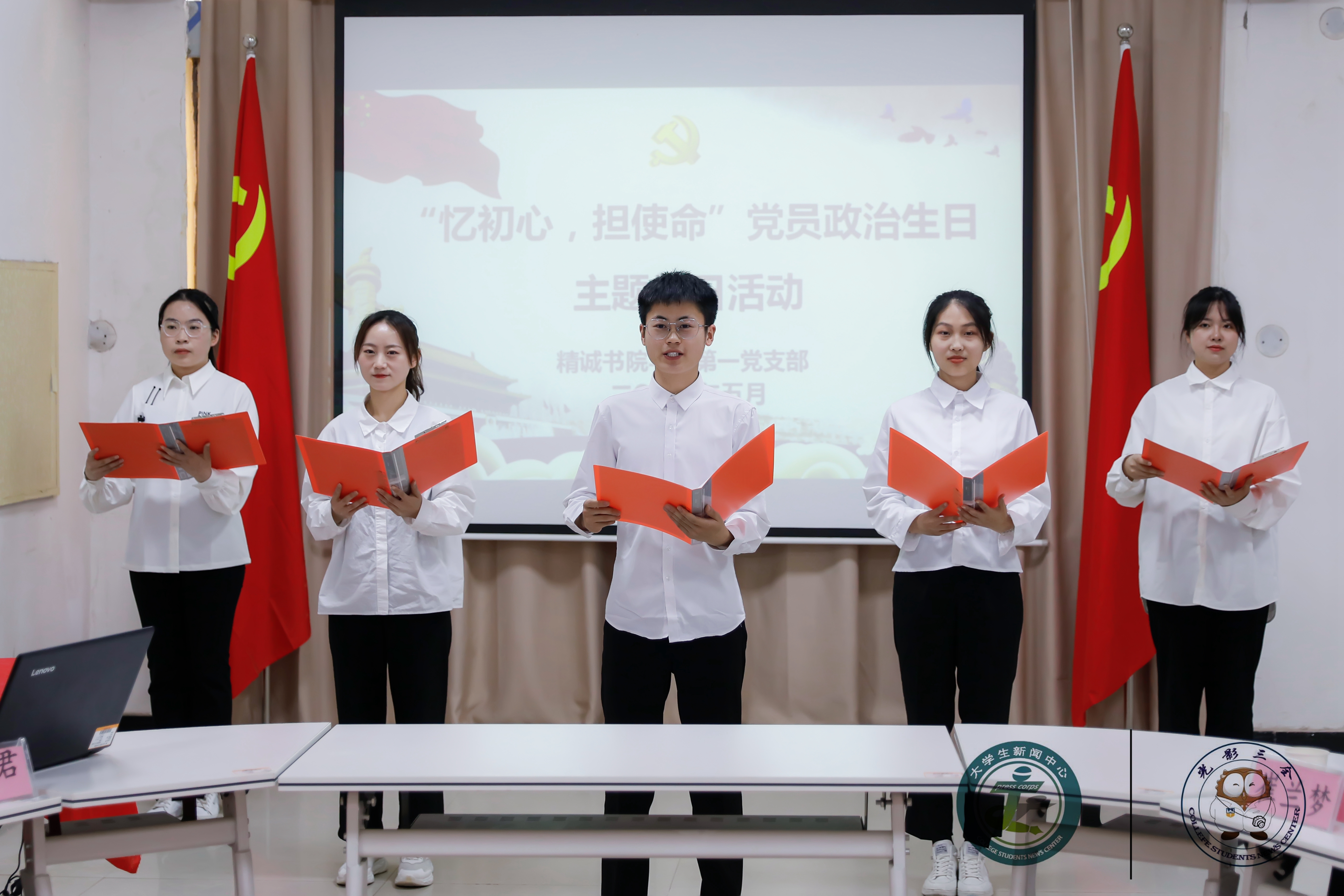 “我骄傲,我是一名在中国共产党的领导下,为人民服务的党员;我自豪,我是一名在中国共产党的领导下,为祖国奉献的党员。”一句句铿锵有力、掷地有声的朗诵拉开了本次别开生面的党员“政治生日”活动,之后精诚书院学生第一党支部书记张欢欢同志带领全体党员重温入党誓词,铿锵有力的誓言,道出了全体党员的初心使命,传递着共产党员的精神力量。