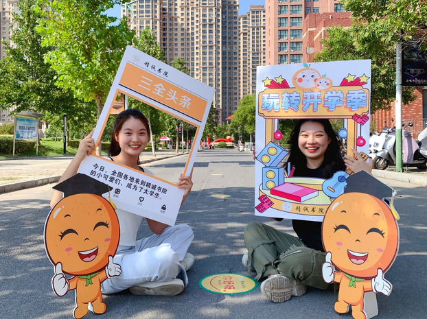 今天,五湖四海的小可爱来到了精诚书院,成为了大学生,在这里,你的人生开启了新的征途,两位同学喜笑颜开,开学喽!