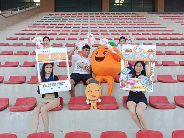 首先,精小橙和小伙伴们来到了操场上,大家在看台上留下了美美的合照。