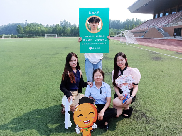 接着画面转到书院门口,与我们一起和新同学比心吧!