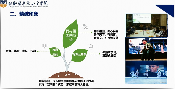 为了更好的立德树人,我校推行“书院+学院”的双院制全新育人模式。专业建设成果突出,数字化校园建设与现代化教育技术日益完善。精诚书院采取线上线下“双线协同”的方式,有序开展了校情校史教育及书院建设发展专题讲座、理想信念教育、廉正教育、国防教育、《宗教事务条例》专题报告,特邀优秀校友对22届新生进行职业规划指导。