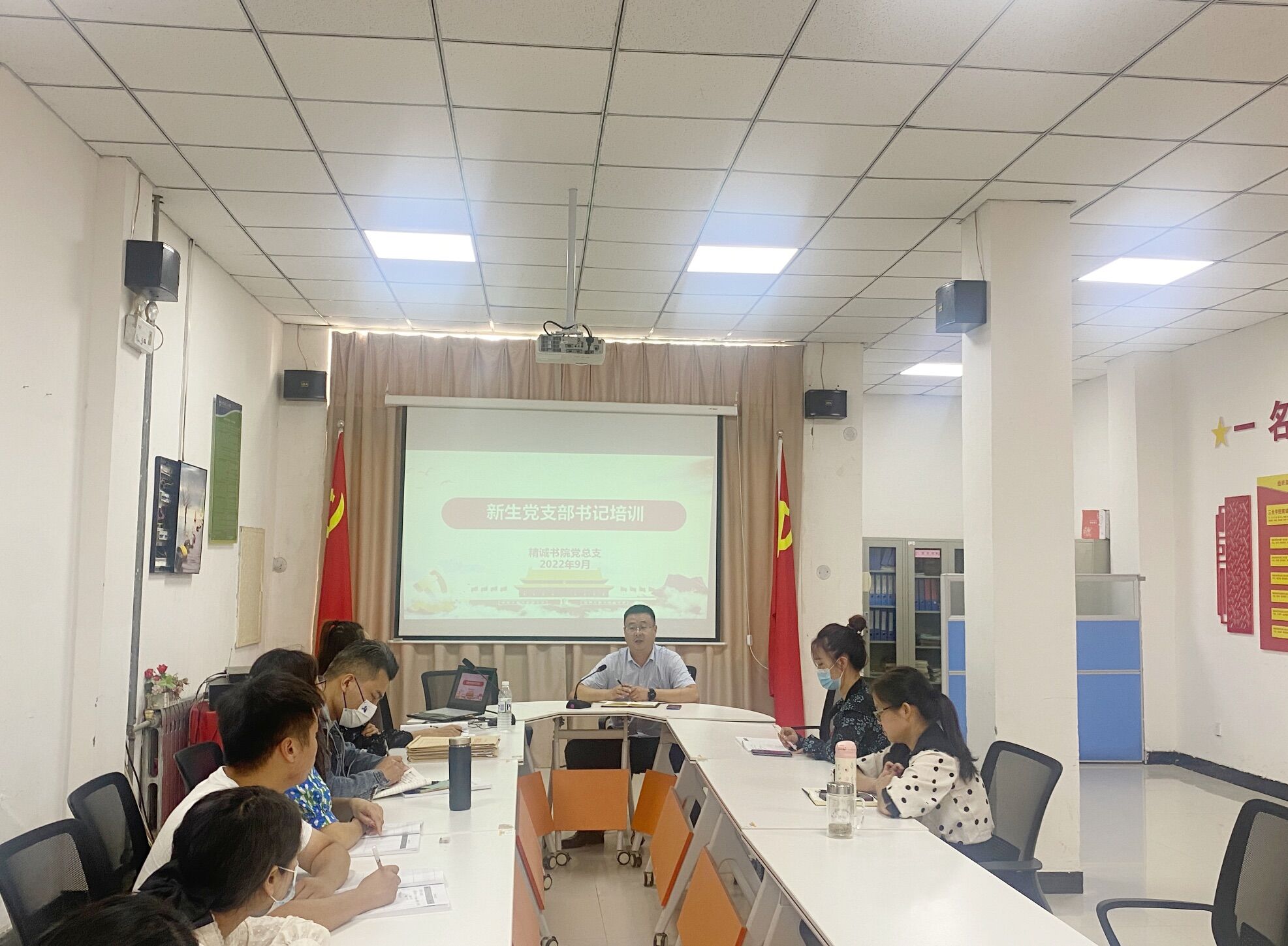 为贯彻落实新时代党的建设总要求和新时代党的组织路线,扎实推进全面从严治党,落实党支部工作科学化制度化规范化,9月28日精诚书院党总支于党员活动室召开了新生党支部书记培训会,会议由党总支书记张新主持,全体新生党支部书记参与本次会议。