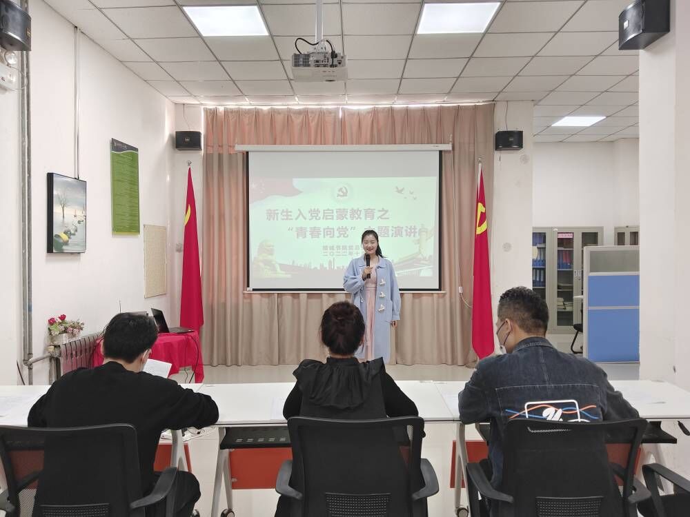 为加强新生思想政治教育,提高新生对党的认识,引导新生主动向党组织靠拢。10月15日,精诚书院党总支根据《精诚书院党总支2022年新生入党启蒙教育活动方案》工作安排,在党员活动室举办“青春向党”主题演讲比赛。院务主任金潇老师、行政专员朱家乐老师、辅导员秦西西老师担任此次演讲比赛评委。