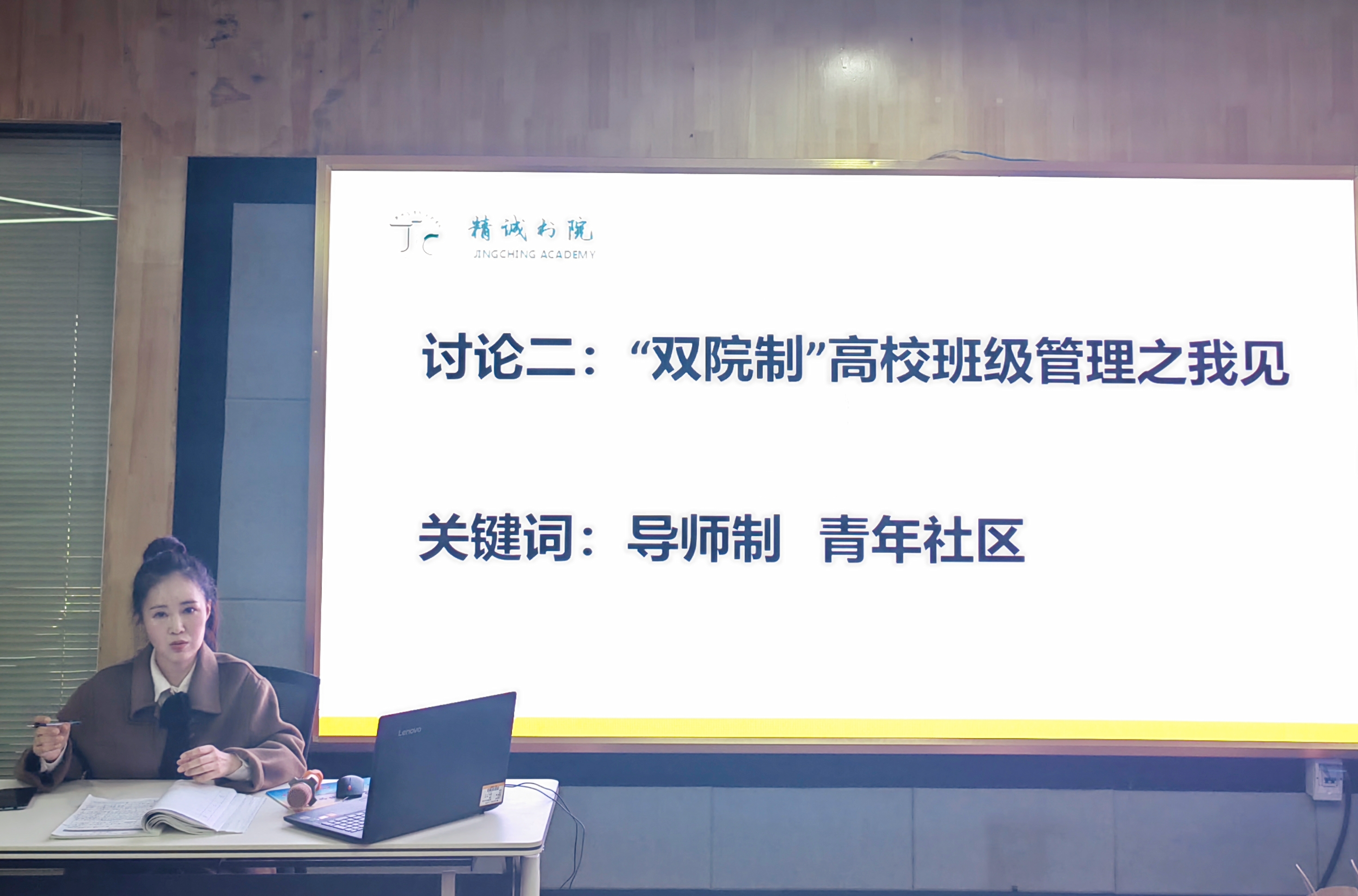 最后,金潇就以上三部分内容做总结性发言。关于学生干部培养,她说,我们对学生干部的选举标准决定着学生干部成长成才导向,学业好、心胸广、政治强是学生干部的成长坐标。说到“双院制”高校班级管理之我见,她指出,我们要将“导师制”和“青年社区”紧密的融入到班级管理工作中,坚持社区浸润,要以“学生社区”为依托,转变学生公寓职能,打造集思政教育、师生交流、文化熏陶、生活服务为一体的智慧社区;坚持协同育人,以导师体系为抓手,明确班级的导师队伍,共同为青年学生思想成长、人生规划、学业发展、学术培养做好教育引导。谈及设计主题党团活动时,她说:“学生活动要为学生办,学生是主体,主题教育活动一定要与学生的亲密度、社会的大时代紧密结合,同时要易实现好操作,‘用有趣的小活动’开展好‘有料的大教育’,让同学们在参与主题教育活动时潜移默化地增强个人使命感和责任感。”