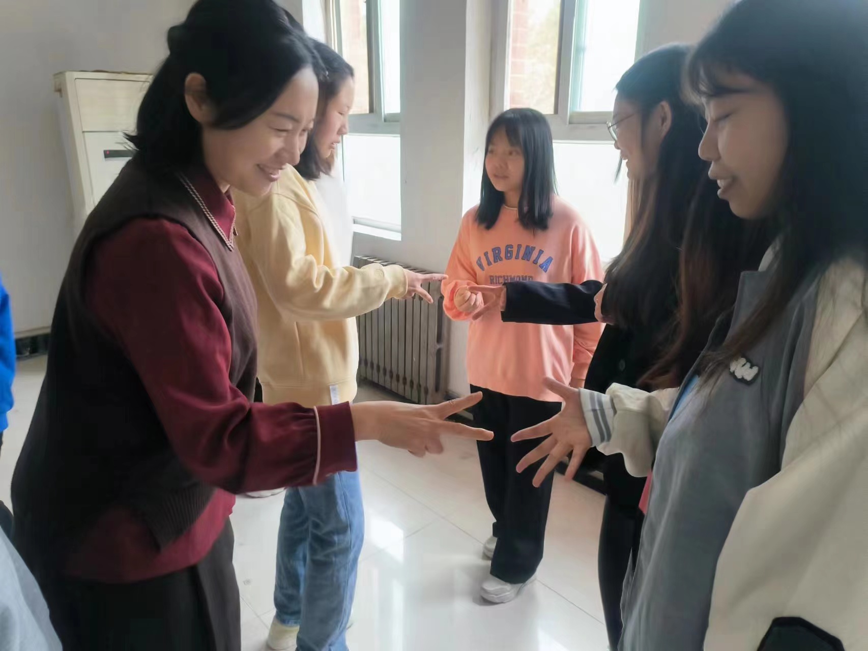 最后,同学们进行了“桃花朵朵开的游戏。游戏过程中,同学们有条不紊地进行交流与尝试,齐心协力解决问题,在合作中感受到了团队的魅力,在欢笑中升温了相互的情谊。
