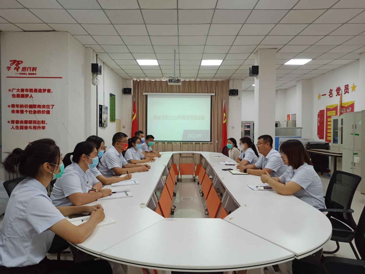 在第38个教师节到来之际,9月10日,精诚书院在党员活动室召开了教师节座谈会,精诚书院党总支书记张新及精诚书院全体教职工参加了本次座谈会。