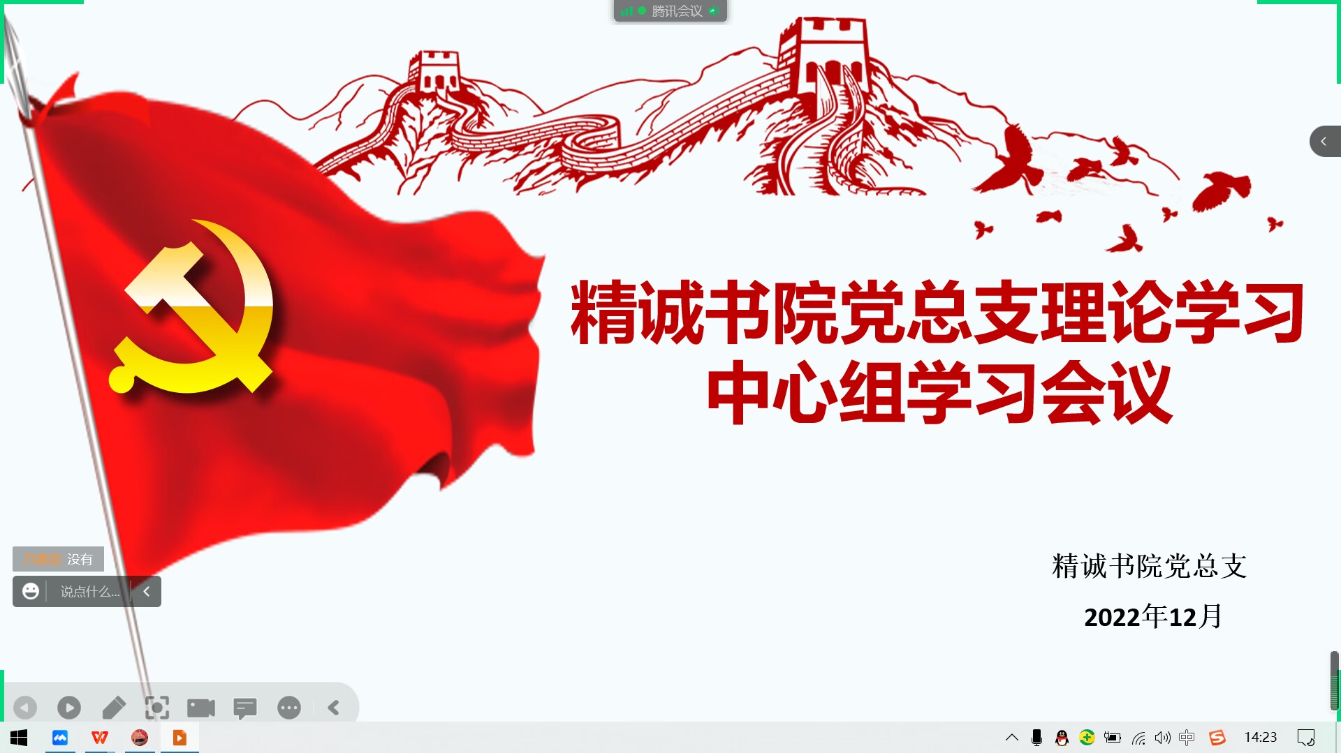 12月7日下午,精诚书院党总支理论学习中心组于腾讯会议召开十二月份政治理论学习会议,会议由党总支书记张新主持,党总支理论学习中心组全体成员参加。