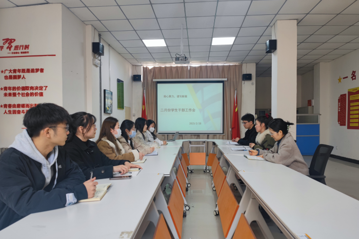 为全面加强学生干部队伍建设,增强书院凝聚力,更好的开展新学期工作,2月20日下午,精诚书院于党员活动室召开了以“新学期新征程,砥砺前行共成长”为主题的学生干部会议。会议由团总支书记金潇主持,杜志婕、朱家乐以及书院各学生组织主席团参加。