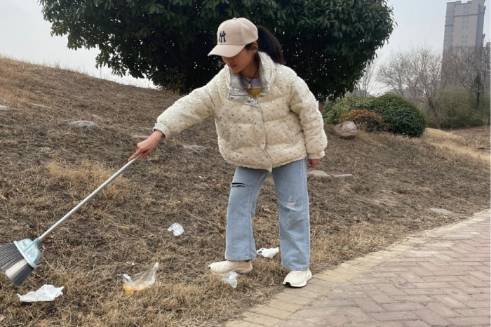 精诚学子在社区义务开展拾捡垃圾、环保宣传等活动,共同守护绿色家园。