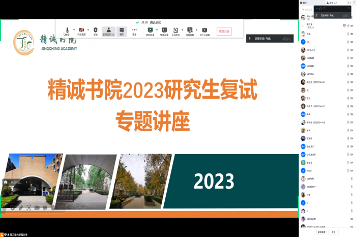 李海斌首先充分肯定了我书院考研学子通过个人努力取得了考研笔试优秀的成绩。提出在考研中应注重体现自己在某一领域的科研潜力或兴趣,鼓励大家以积极向上的心态参与复试、调剂,提前做好复试的准备。李海斌从用词搭配、语言组织、个人着装等方面对我书院考研学子进行了复试面试指导。希望同学们进一步深入了解考研复试与调剂流程、掌握技巧,更加科学合理地做好规划,以从容的姿态应对考研复试、调剂事项,也祝愿每一位考研学子能够成功圆梦。分享会后李海斌学生们的疑惑进行了一一解答。