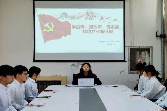 为提高精诚书院第九学生党支部党员同志的政治修养,3月15日,精诚书院第九学生党支部于党员活动室开展《学雷锋、拥改革、促发展,建功立业新征程》主题党日活动。本次活动由支部书记刘田莉主持,支部全体党员参加。