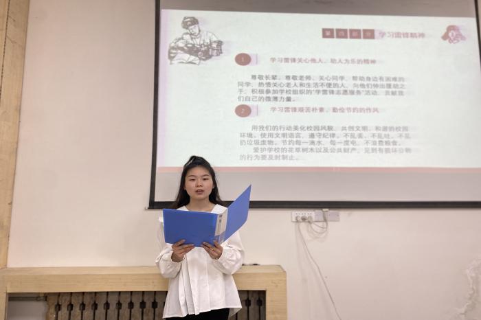 随后,学生代表进行交流发言。付冰清表示,雷锋精神是以雷锋的姓名命名,以雷锋的品质和情怀为内蕴,以全心全意为人民服务为实质和核心,在时代实践中不断丰富和发展,为人们所敬仰和追求的一种红色精神。刘玉娇提出,雷锋和雷锋精神的出现,对于建设中国特色社会主义具有重要价值和意义,是我们的民族精神的最好写照,将继续大力激发社会正能量,为实现中国梦提供强大精神动力。在新时代,在实现中国梦的伟大征程中,雷锋精神焕将发出更加灿烂的光彩,将培育出更多的“当代雷锋”和众多“时代楷模”道德模范。
