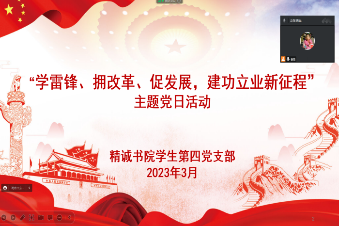 3月9日,精诚书院学生第四党支部开展了“学雷锋、拥改革、促发展,建功立业新征程”主题党日活动。