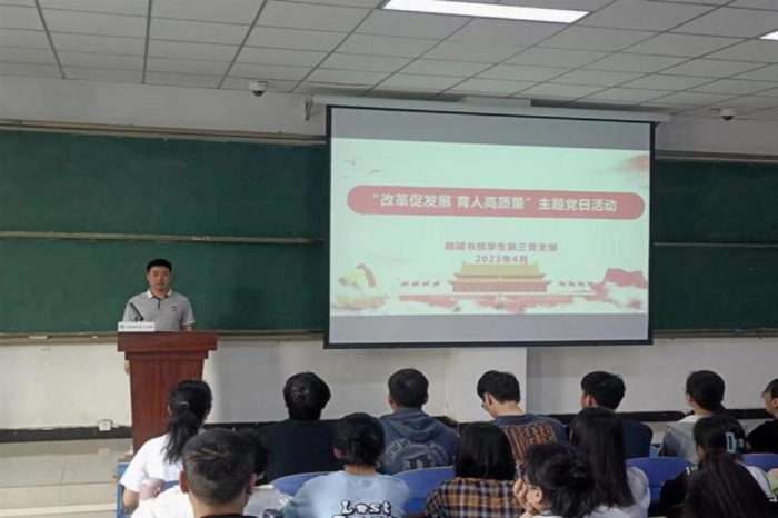 4月15日,精诚书院学生第三党支部在新乡校区问学楼301教室开展“改革促发展、育人高质量”主题党日活动,此次活动由党支部书记王春平主持,全体党员参加。
