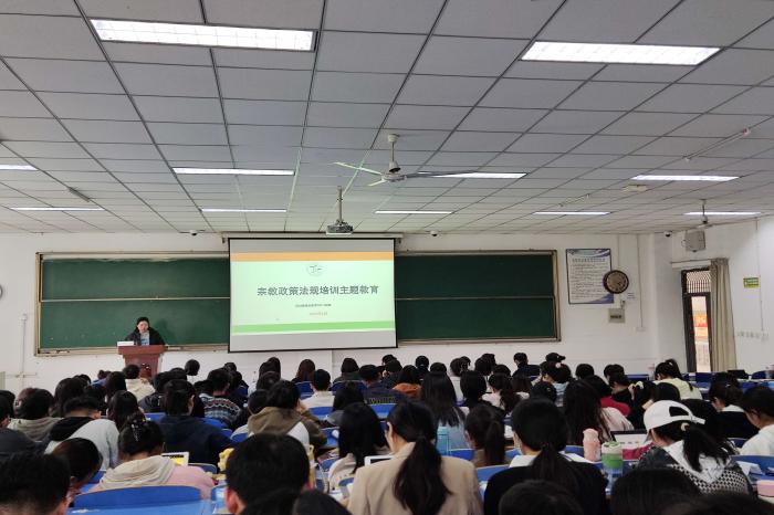 4月27日,书院党总支面向全体学生召开民族宗教政策法规宣传主题班会。辅导员从民族宗教政策宣讲、国家相关法律法规、反邪教宣传等方面,为同学们详细讲解了中国特色社会主义民族宗教理论、马克思主义宗教观、党和国家关于宗教工作的基本方针政策等有关内容,带领同学们学习了宗教事务方面的基本知识,帮助同学们树立正确的宗教观,理清宗教和科学的关系,认清邪教的本质,把握校园文化价值导向,增强自觉抵御宗教渗透的意识和能力。