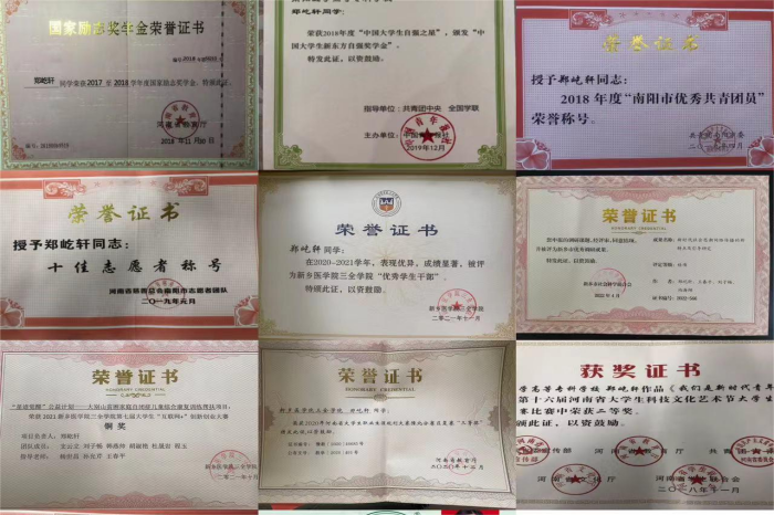 获得荣誉:中国大学生自强之星、国家励志奖学金、优秀学生干部等