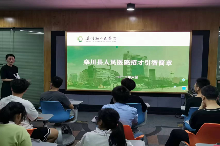 宣讲会伊始,栾川县人民医院通过PPT展示、视频宣传以及面对面交流的方式从发展历程、成就与荣誉、文化简介、医师团队、医院环境等方面进行了详细介绍。随后,对医院招聘岗位以及招聘要求进行了具体介绍,全方位展示医院和企业的发展潜力和人才需求的能力取向。