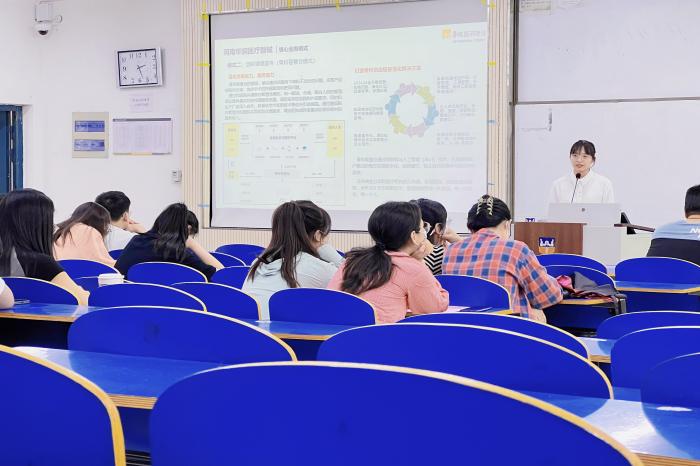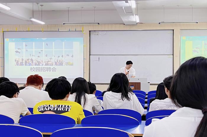 宣讲会伊始,招聘企业通过PPT展示、视频宣传以及面对面交流的方式从发展历程、成就与荣誉、文化简介、企业团队、企业环境等方面进行了详细介绍。随后,对企业招聘岗位以及招聘要求进行了具体介绍,全方位展示企业的发展潜力和人才需求的能力取向。