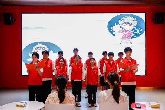 随后,精诚书院学生志愿者集体朗诵《民族复兴》,“巍巍中华屹立在世界的东方,祖国大地洋溢着奋进的乐章。中华儿女充满豪情梦想,要把祖国建设得更加繁荣富强……“同学们声情并茂的朗诵把现场气氛推向高潮,展现了我校学子青春洋溢、意气风发的良好精神风貌。