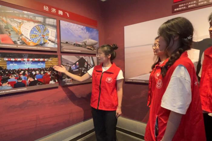 首先,实践队队员刘露化身讲解员带领大家进入二七纪念塔,伴随着慷慨激昂的讲解,一幅永载史册的光辉长卷徐徐展开,墙上的浮雕再现了京汉铁路工人“争人权,争自由”,不畏强暴,团结互助举行大罢工的场景。一路上游客们沉默着,面容悲伤,静静地注视着馆内的文物。“我们要学习历史,了解历史,把‘二七精神’转化为指引自己前行的精神动力,赋予其时代内涵、时代特质和时代风采。刘露说。