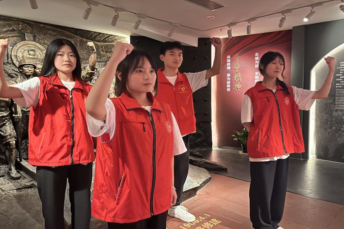 最后,在队长牛潇的带领下,全体队员在纪念塔门前庄严地宣誓。牛潇说:“我们要牢记‘二七精神’,团结奋进,勇往直前,面对困难不言弃,学习前辈们敢打敢拼的优秀品质。传承红色基因,发出把个人融入国家、融入时代的青年之声。”