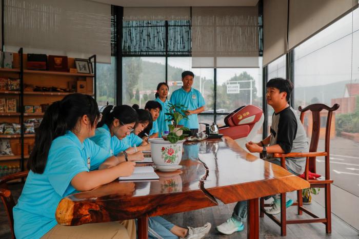 游学团队来到红旗渠红色教育基地风景区。首先,游学团来到渠上文旅,由渠上文旅负责人吴东泽为大家做以“青春寻访红旗渠,感悟红色印记”为主体的先导讲座,以导促学,以践促学。随后,游学团在红旗渠纪念馆参观学习,从一张张珍贵的历史图文资料、一件件锈迹斑斑的文物到一个个还原工程全貌的沙盘模型,游学团成员仔细学习、认真记录,感受当年林州人民为改变恶劣的缺水条件,干部身先士卒,群众团结一心,手拿凿具开山修渠,不畏艰难、艰苦奋斗的精神。最后,游学团成员在馆内进行了诗歌朗诵,以“诵”的形式来表达对红旗渠建设者的敬畏之情,同时也深刻感悟到习近平总书记视察红旗渠时重要讲话精神的深刻内涵。