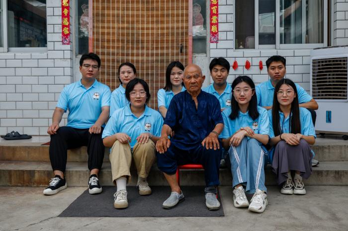 游学团出发前往姚村镇寻访红旗渠建设者,经过一路探寻来到姚村镇翟底村,找到了当年红旗渠建设者常计林老人,常老今年已经90岁高龄,但给成员们讲到当年修渠故事时自豪不已、慷慨激昂。常老从修渠的背景、修渠故事及修渠之难娓娓道来,大旱、连旱、凶旱......小米加野菜、甚至吃树皮,面对这样的困难境遇,空有一身劲的他在1958年加入到修渠队伍中,这一修就是10年,10年间他过家门而不入,吃住在石缝。修渠过程中最难的就是所有的修建全部都是靠人工,所有的修渠用料只通过人工搬运和毛驴运送,修渠过程异常艰辛。讲到在修渠中“老炮眼”时,常老多次哽咽讲不下去,因为他亲眼见到了炸药爆破中被炸的血肉模糊的身躯。当团队成员向常老表示都是00后时,他不禁感慨到,他们都生在了好时代,以前的苦日子已不复再来,也希望孩子们都能成为国家栋梁之才。最后,常老表示游学团来的巧,当天恰逢自己90岁生日,回忆和自己一起修渠的杨贵、任羊成等都已离世,心中难免伤感,但是红旗渠精神将永垂不朽。