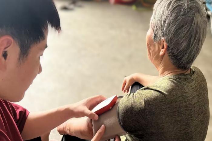 身体健康,无比珍贵。志愿者们给村里留守老人开展了一次身体健康普查活动,其中一位林奶奶,因为年轻的时候长期奉献在西南地区支教,严重的潮湿环境导致了现在腿脚不利索,无法去活动现场做身体检查,志愿者张渊博了解到这个情况后,立马协调志愿者田浩博去到林奶奶家里为她测量血压,询问身体状况,并为林奶奶打扫了卫生,清晒了被褥。林奶奶说:“你们一来我家里就热闹了,真心感谢你们啊。”通过这次身体健康普查,不但将健康和安全知识送到老人身边,更是将关爱送进留守老人家里,送到老人的心窝里。
