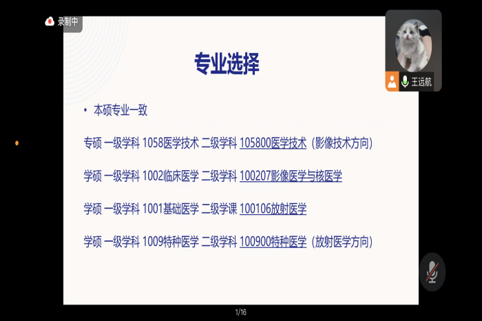 在2024年全国硕士研究生网上报名之际,为指导医学影像技术专业的同学对报考院校和专业以及未来就业前景有更清晰的认知,精诚书院邀请医学影像学院的王远航老师于2023年9月25日针对书院医学影像技术专业的600多名实习生利用线上平台开展了题为:“医学影像技术考研专业填报和就业前景分析”的专题考研讲座。