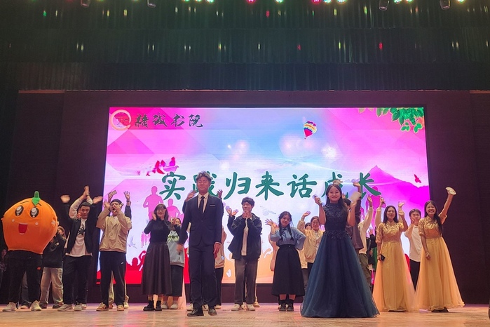 10月8日晚,精诚书院于闻德礼堂通过“线下+线上”相结合的方式举行实践归来话实践暨“燃青春,向未来”迎新晚会。精诚书院团总支书记金潇、全体辅导员以及2023级新生共同参加。