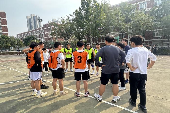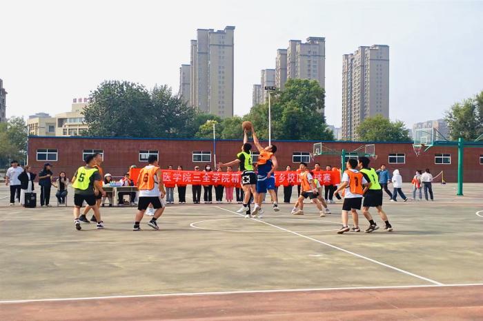 此次比赛共五支队伍,分别是21级影像“魔王队”、22级临床“饮水机队”、23级临床“干饭不排队”、“梦八队”和“洒洒水队”。走进操场,未闻其名,只听其声便知道这些队伍的实力非同一般,所有人都期待他们在赛场上的精彩表现。伴随着场下啦啦队呐喊助威声,篮球队员们进取投入、全力以赴,接连进球,赢得了一阵阵欢呼声。