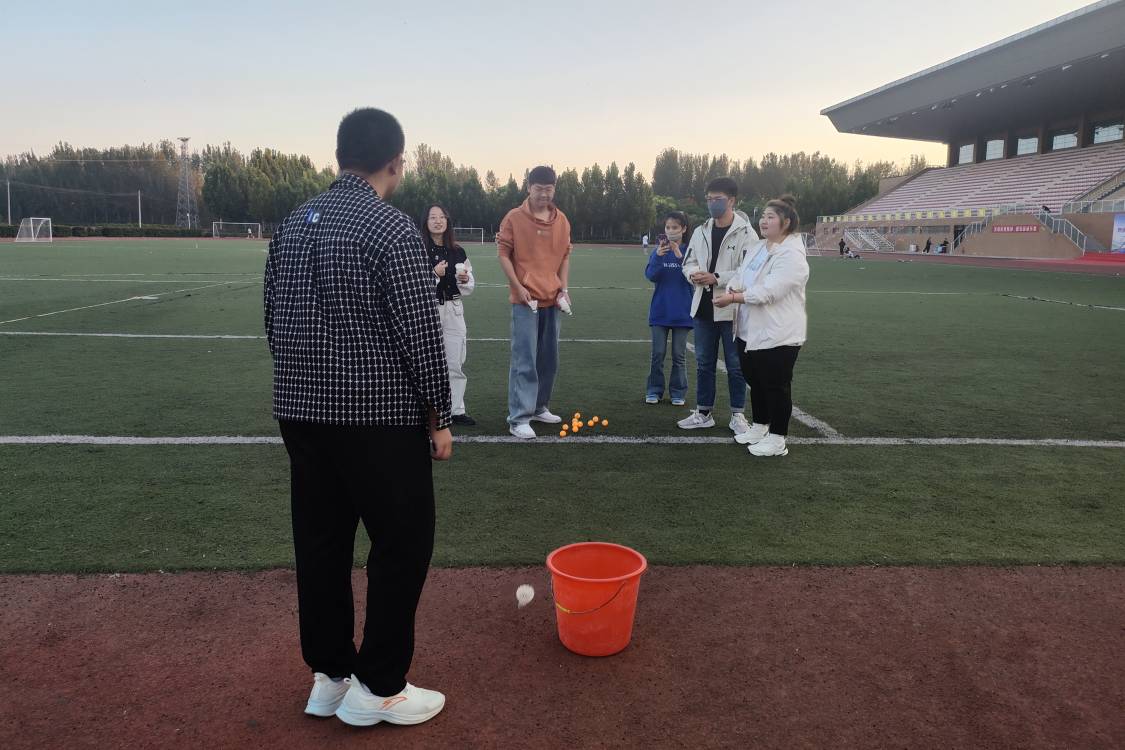 在接下来的投球入桶游戏中,团队成员需距桶5米进行投球。同学们不断调整投球的角度和力量,逐步提高了命中率。在欢乐活跃的游戏气氛中,同学们不仅体验到了游戏的乐趣,也锻炼了专注力与协调能力。