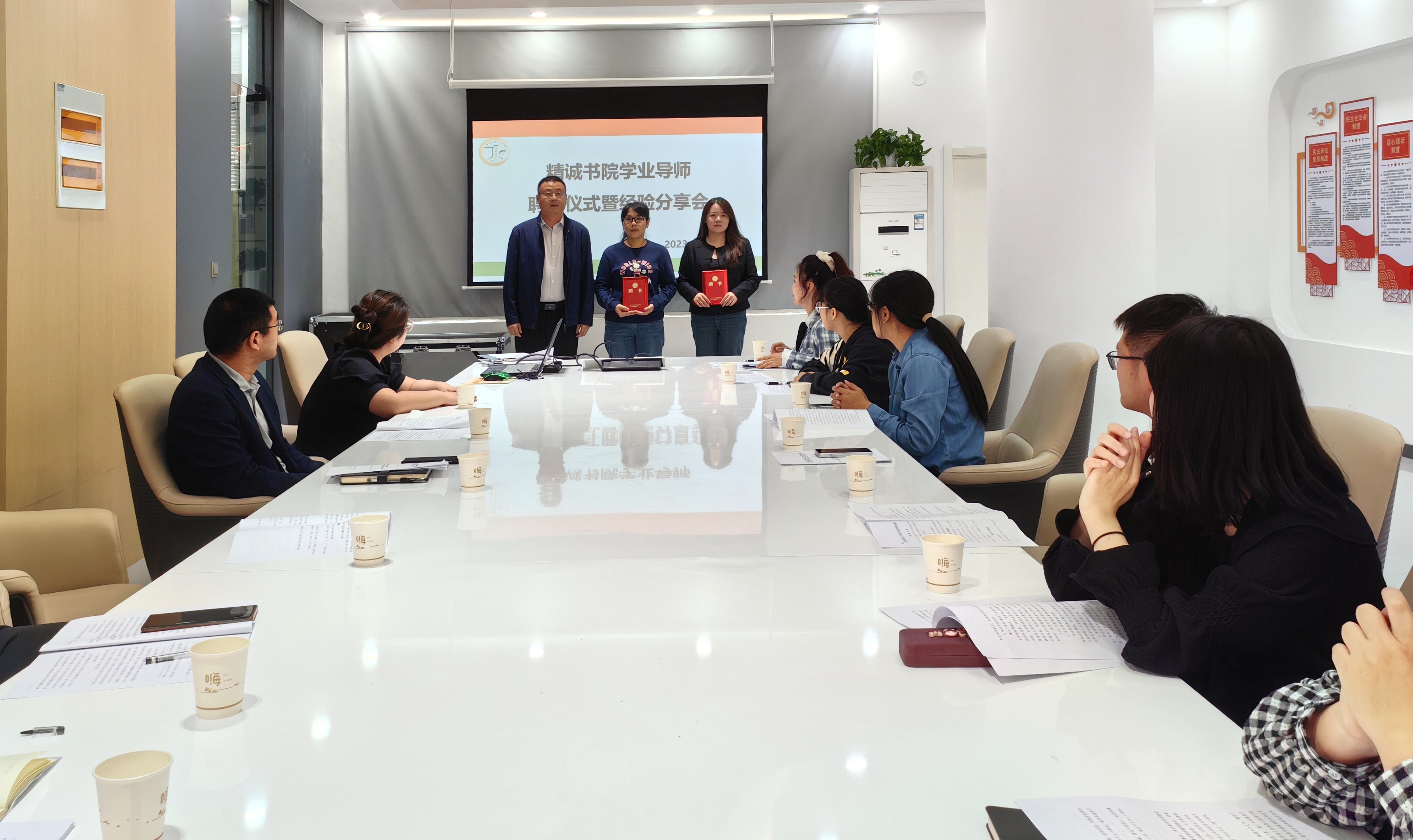 首先,张新宣读了新聘学业导师名单并颁发了聘书,张倩结合学校相关文件,详细解读了学业导师岗位职责、管理与考核、政策保障。