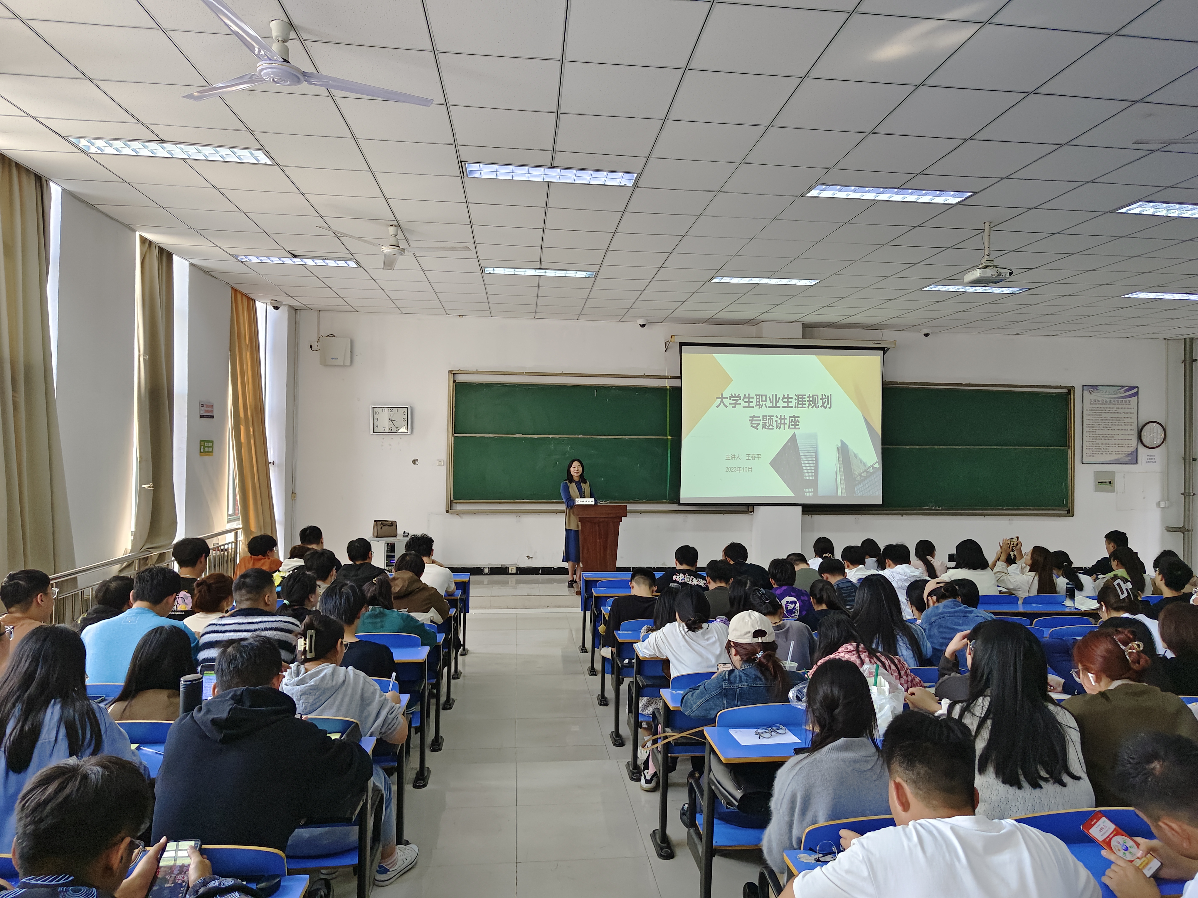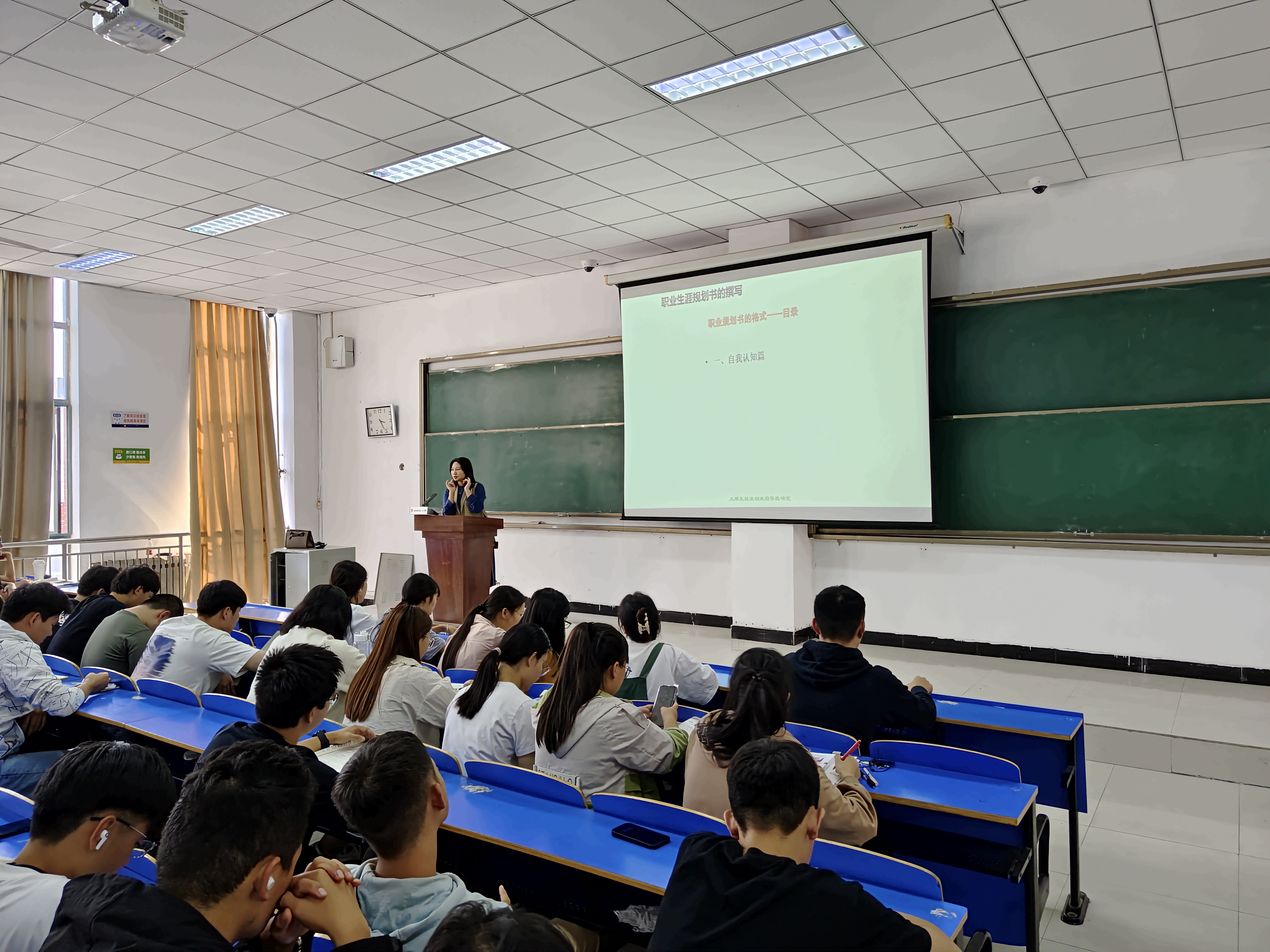 为了使同学们更好的理解职业规划,她将职业规划分步讲解:第一步,自我认知,学习理论;第二步,职业评估,学习技能;第三步,职业定位,人职匹配;第四步,计划与路径,实施方案;第五步,评估与调整,定期总结调整。最后,王春平强调了职业生涯规划的重要性:希望同学们尽早树立职业规划意识;确立职业目标、规划好大学生活;学会学习、学会做事、做人,构筑美好的人生蓝图。