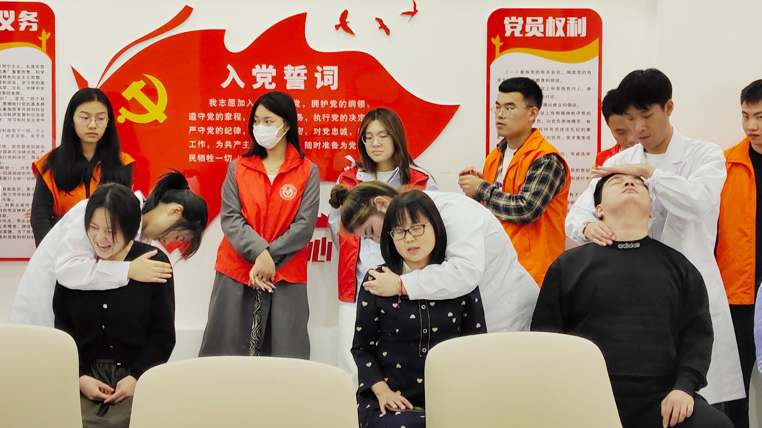 随后,志愿者将理论知识运用到实际操作中,为在场的老师和同学们进行推拿服务。他们手法熟练、动作精准。在问诊、推拿过程中,志愿者们结合所学的soap问诊、肌肉骨骼康复技术、推拿技术为师生进行服务,受到在场师生的一致好评,进一步激发了志愿者们学好专业技术的动力。