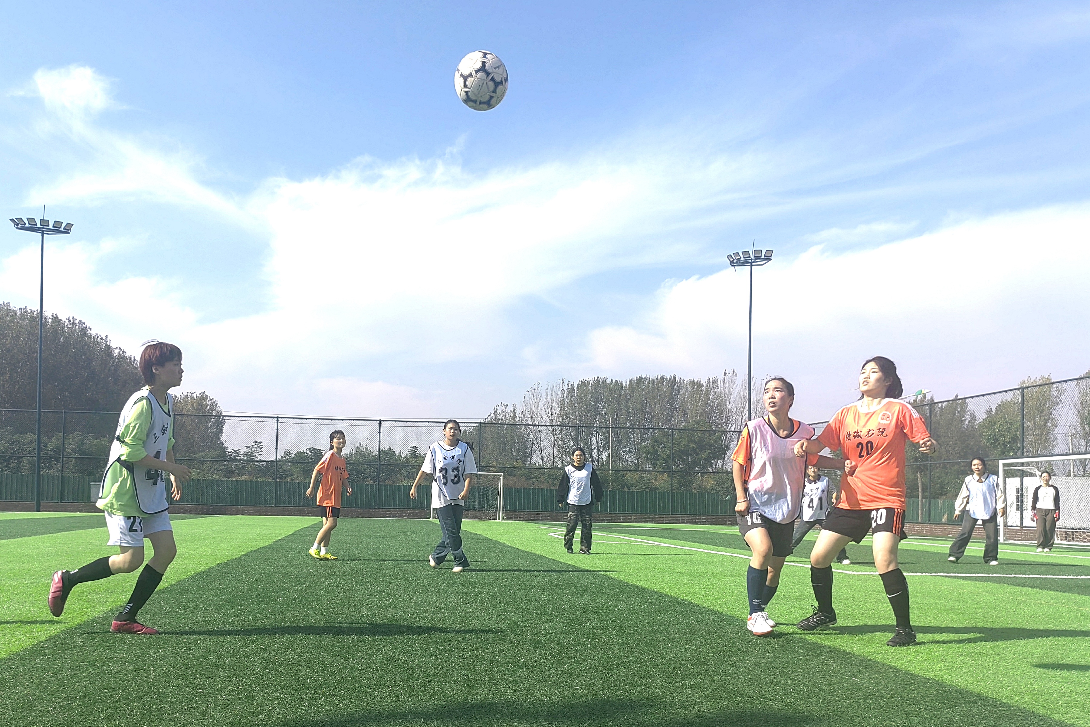 绿茵未见硝烟,脚下尽显兵马。足球赛在每一位球员的顽强拼搏下,被定格成了一幕幕的美妙瞬间,当足球划破天空,汗水滴落在草上,足球场的风就被女足队员们奋勇争先的坚定风采渲染成了金色,荡漾出蓬勃生机与青春活力!