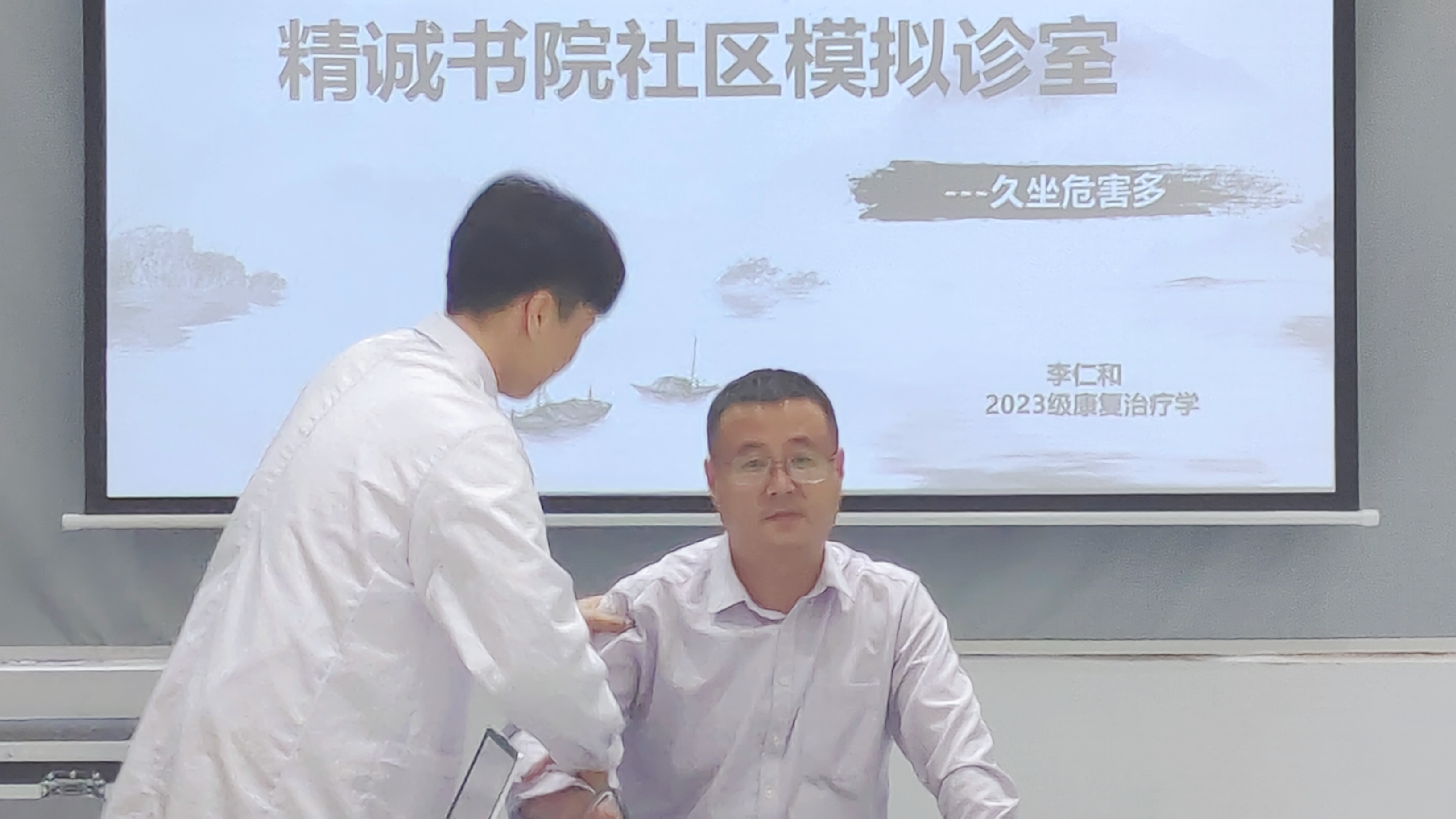 为进一步提高师生的健康意识和自我保健能力,培养书院康复治疗学专业学生服务社会能力,10月26日下午,在精诚书院党团之家举办了学生社区“模拟诊室”活动,精诚书院30余名康复治疗学专业志愿者为书院师生提供了健康咨询以及推拿服务。