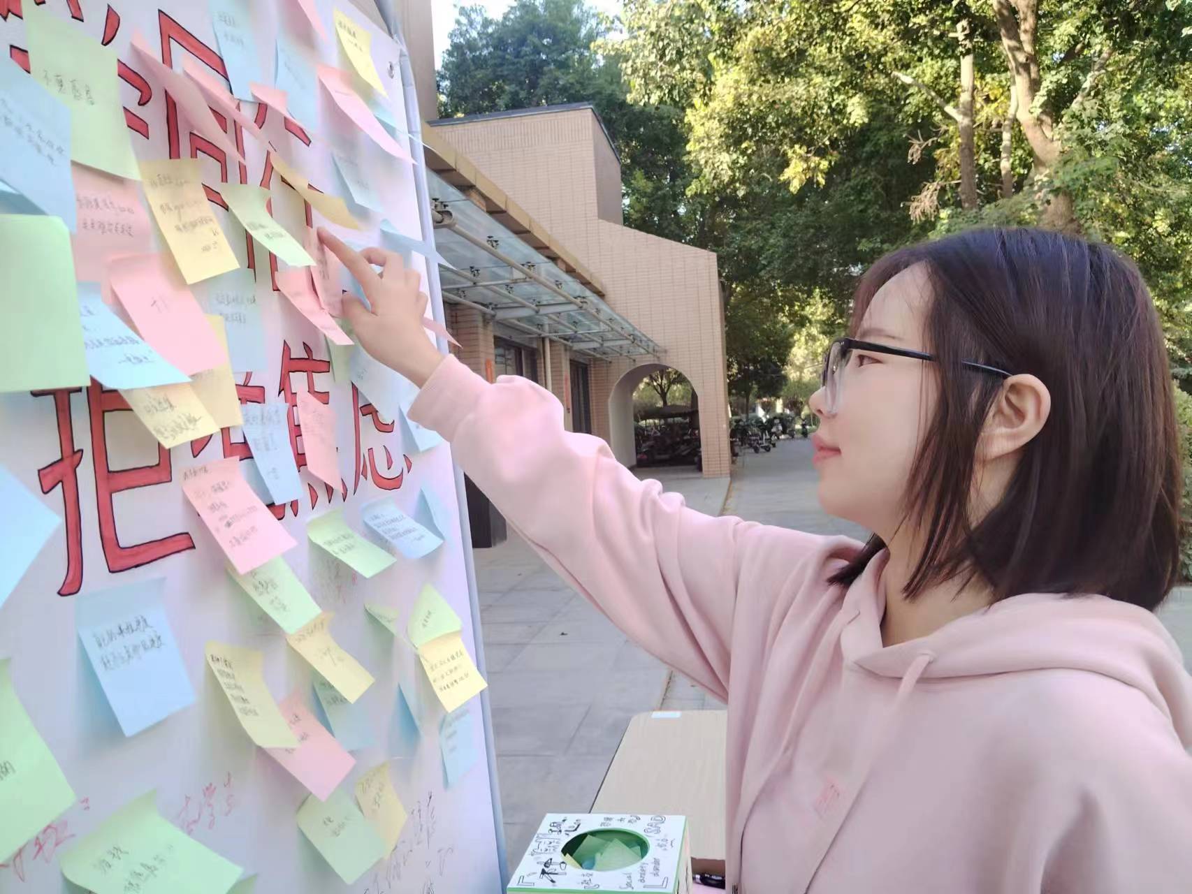 在“与爱同行,拒绝焦虑”交换心情盲盒活动中,活动现场气氛热烈而温馨,同学们纷纷来到便利贴墙前,或独自思考,或与朋友讨论,将自己的心情、感受或疑惑写在便利贴上。有的同学写下了对未来的迷茫:“不知道毕业后该何去何从,希望有前辈可以指导一下。”有的同学写下了对学业的焦虑:“课程太多,不知道该如何平衡各个科目的时间。”申燕南说:“这个活动很有趣也很有意义,倾诉了自己烦恼的同时还得到了安慰,在很平常的日子里被陌生人鼓励了一下,这种感觉很奇妙。”孟新雨说:“人人都有焦虑,面对焦虑,我们要学会及时发现、及时抒发、及时调整。”