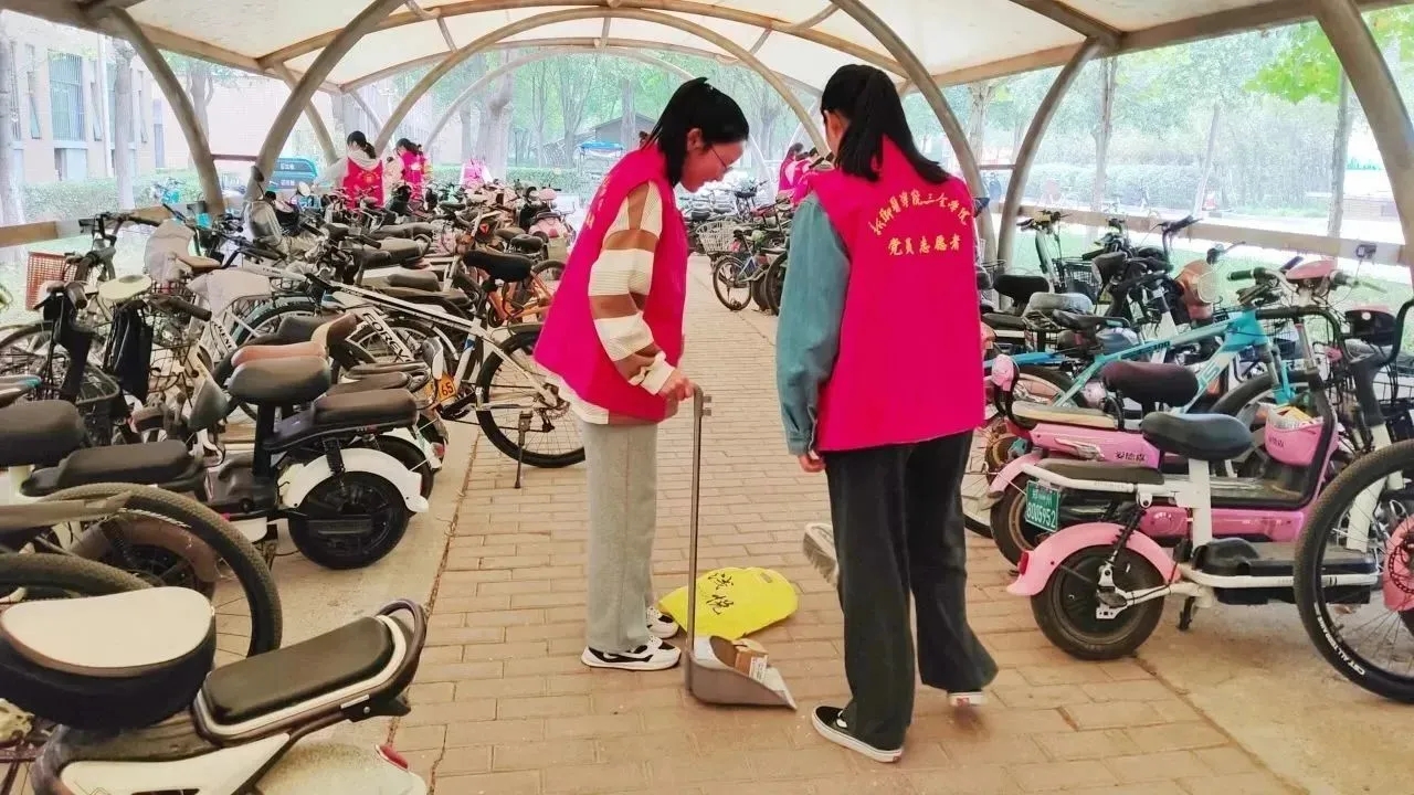 活动中,志愿者们拿着垃圾袋、铁夹、扫帚打扫和清理杂物、树枝、落叶等垃圾,红马甲不断穿梭在校园的各个角落,认真检查不放过任何卫生死角,切实做到了整治一处,清洁一处,靓丽一处,争做美好校园的捍卫者。