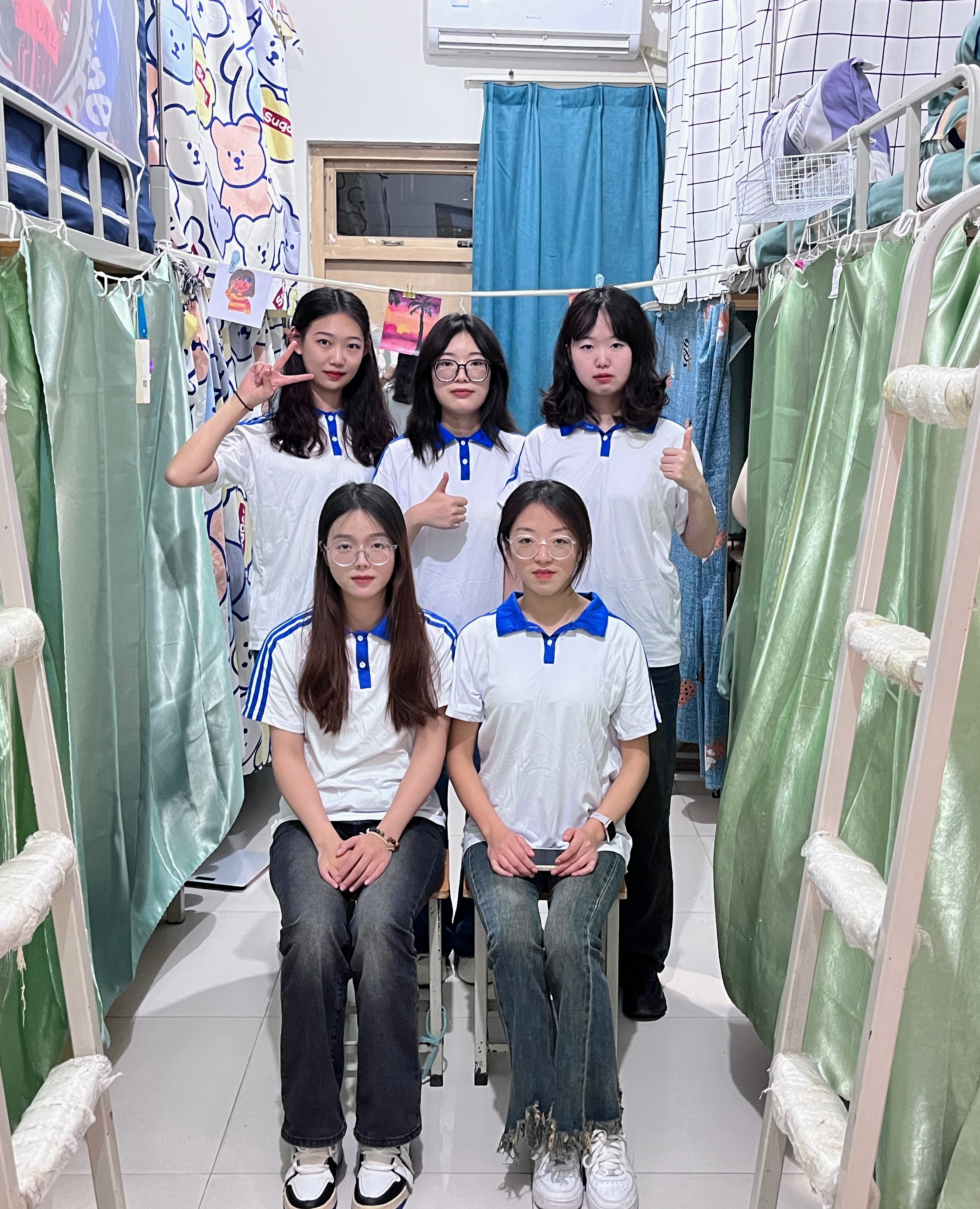 宿舍简介:我们的宿舍就像一个温暖的窝,每个人都在用自己的方式为这个家付出。墙壁上挂着温馨的装饰,柜子上摆放着我们的照片和手工艺品。每个角落都充满了温暖和欢乐。