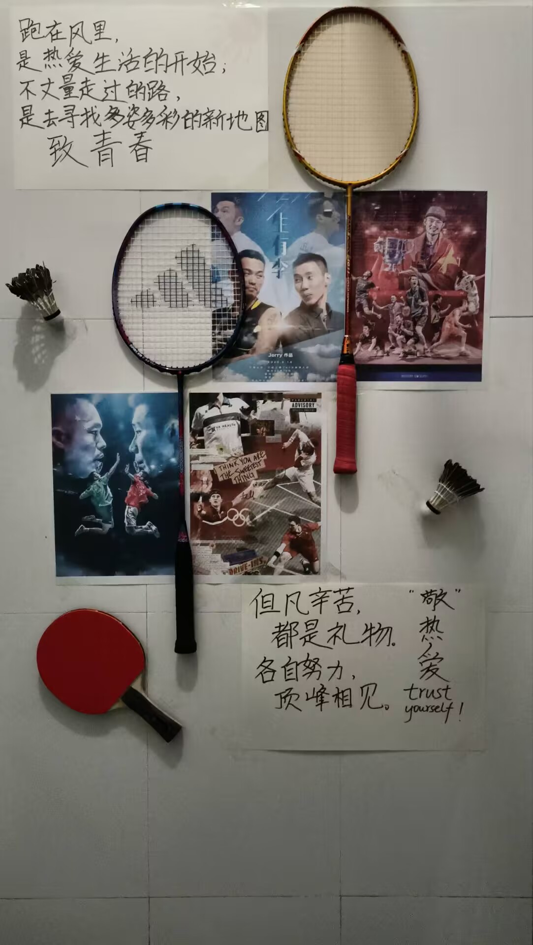 宿舍简介:每个人心中都藏着这样一个梦想,想拥有一隅天地,来装载生活的温暖喜乐,或让梦想生长绽放。我们宿舍以朴室为理念,简约大方,饱含热情,用运动健身来点缀生活,以青春激情来充实大学生活,践行着野蛮其体魄文明其精神的理念,一起向未来奔跑,闪亮青春