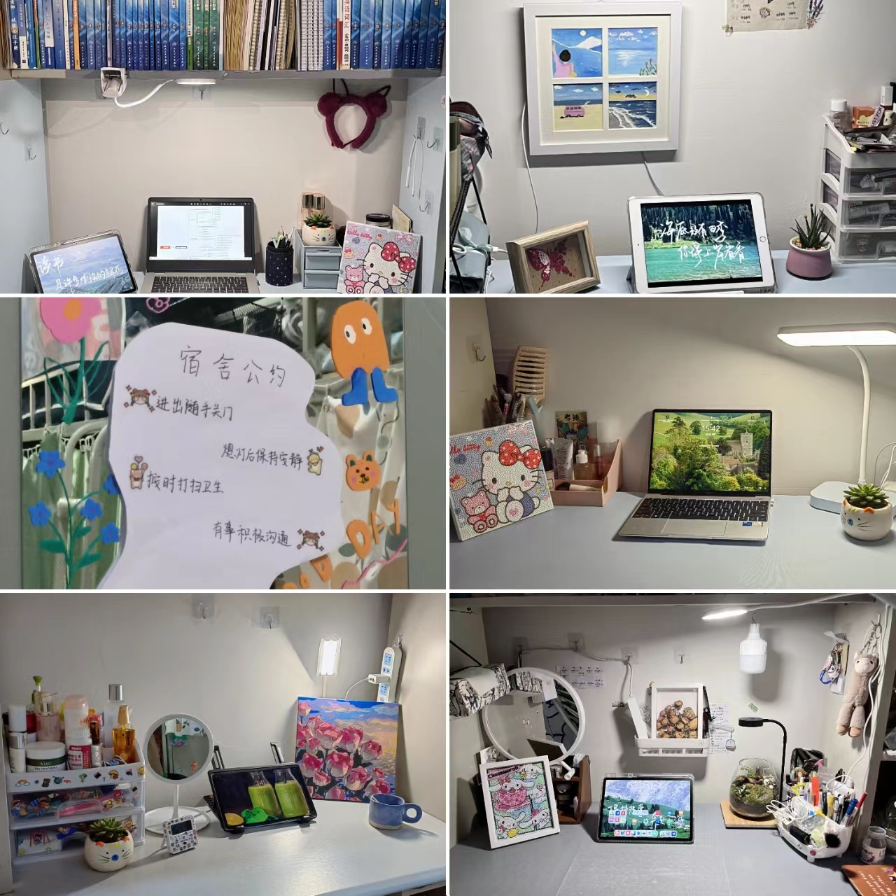 宿舍简介:我们的宿舍就像一个温暖的窝,每个人都在用自己的方式为这个家付出。墙壁上挂着温馨的装饰,柜子上摆放着我们的照片和手工艺品。每个角落都充满了温暖和欢乐。